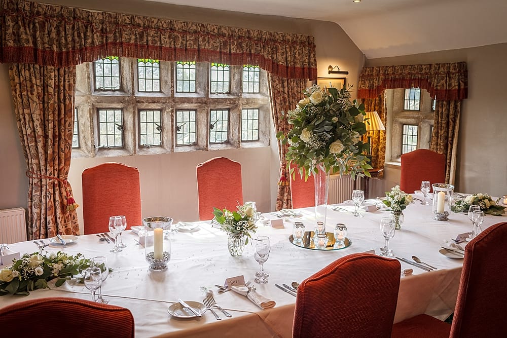 Small wedding receptions can take place in the Mullioned Restaurant or a private dining room on the first floor overlooking the gardens, or even outdoors in the Courtyard.