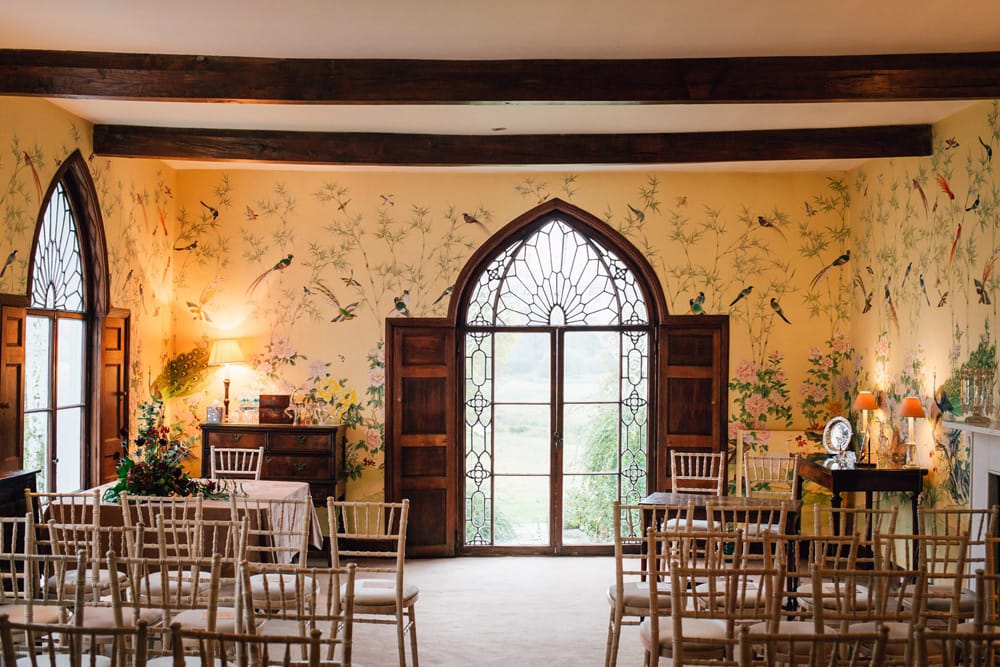 If you are having an outdoor wedding ceremony then we have a number of options including a riverside fishing hut (seats 6), the Conservatory (seats 30) and Orangery (seats 110) in the walled garden, and the Chinese Dining Room (seats 54) and Music Room (seats 38) in the house.