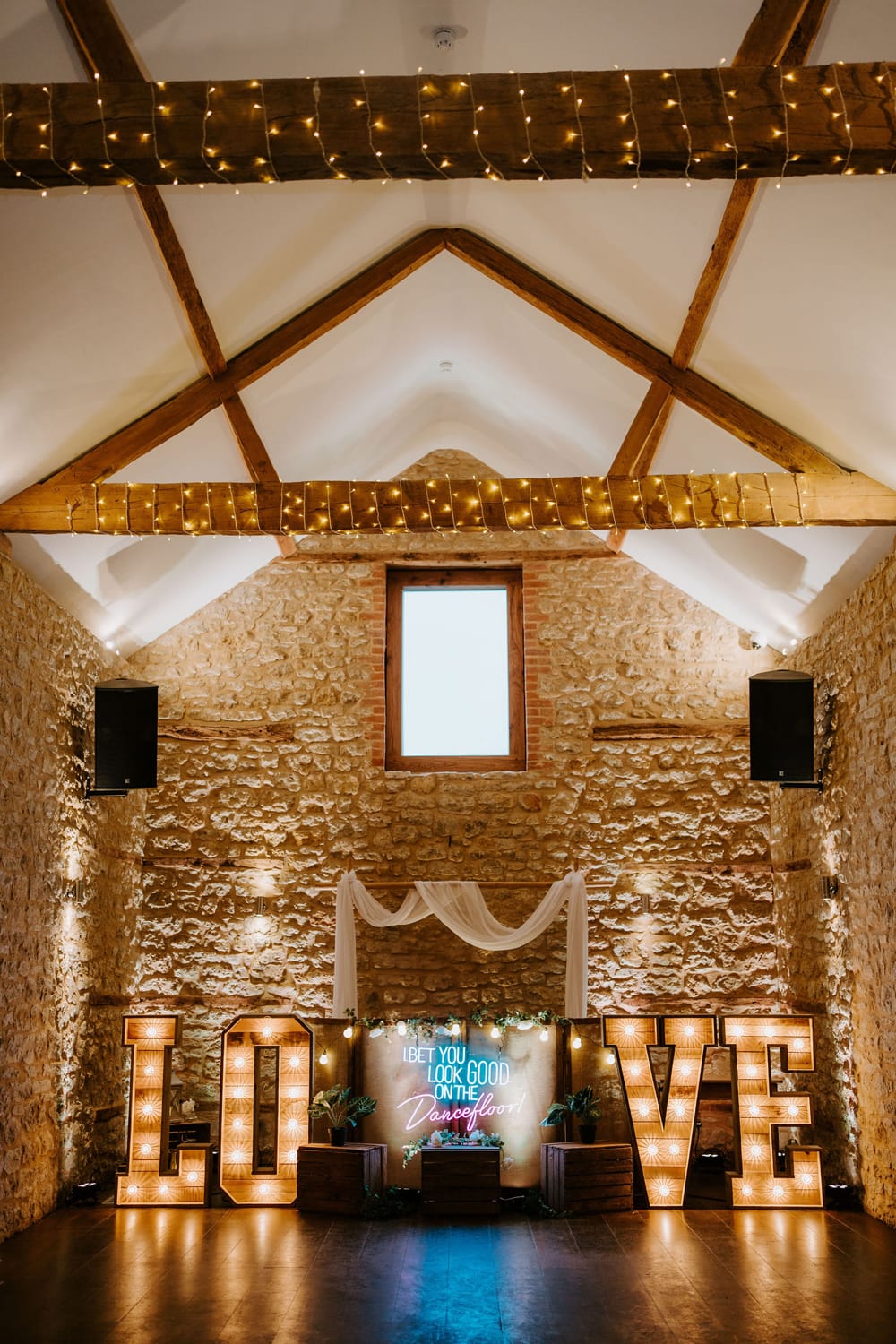 Huntsmill Farm is an exclusive-use wedding venue set in the peaceful Buckinghamshire countryside, close to the Northamptonshire and Oxfordshire borders. At its heart is a beautifully converted 18th-century stone barn, full of rustic charm with exposed beams, a soaring vaulted ceiling and soft romantic lighting. The barn opens onto a pretty courtyard and lawned gardens, surrounded by open fields that provide a stunning backdrop for your day.