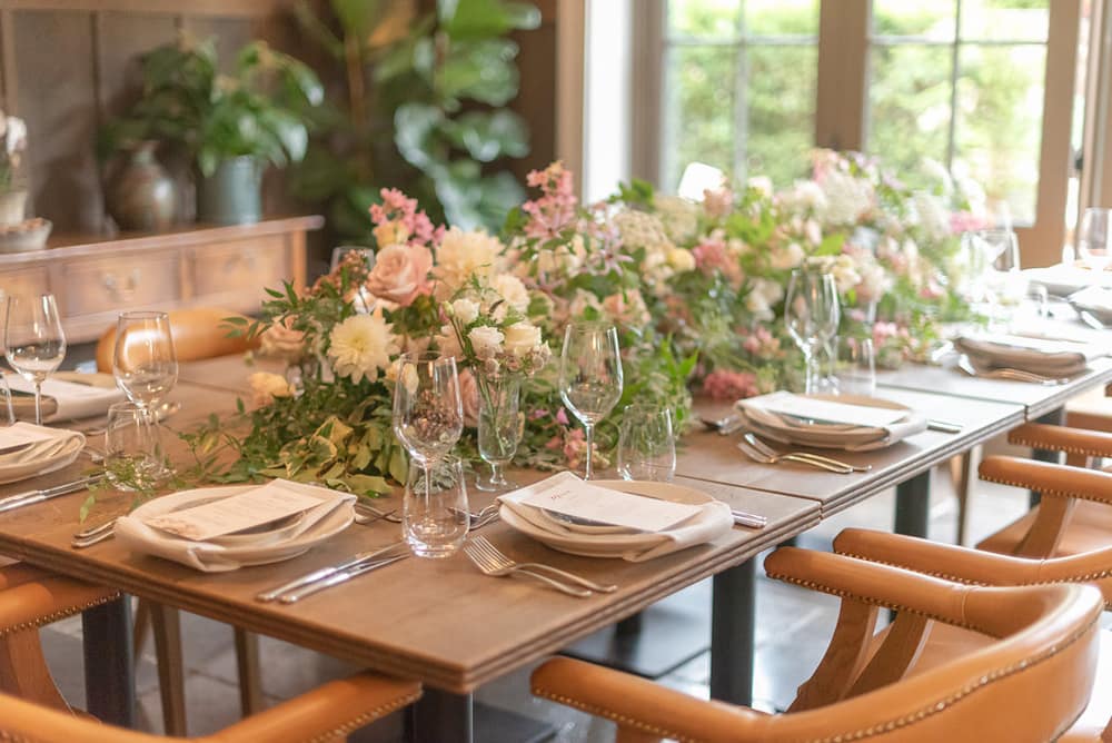 With exclusive hire of the entire hotel, the reception unfolds in the atmospheric restaurant, where exposed beams and sleek wood flooring set a sophisticated tone. The layout’s flexibility means couples can easily design their day, from seated wedding breakfasts to lively dancing as the evening unfolds. For a summer celebration, the terrace extends the party outdoors, perfect for champagne receptions beneath the stars, with heaters and cosy furnishings keeping guests comfortable late into the night.