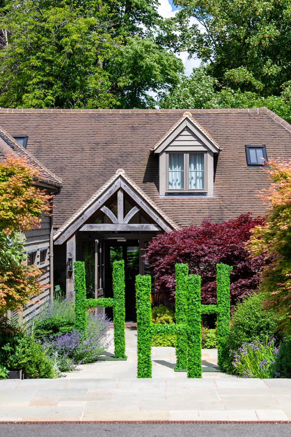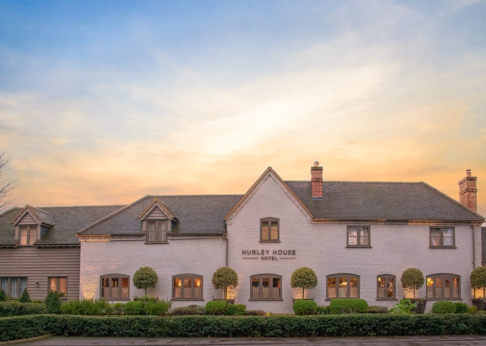 Tucked between the village of Hurley and Henley-on-Thames, Hurley House Hotel offers a distinctive setting where contemporary elegance meets countryside charm. The white brick and oak exterior immediately catches the eye, while manicured gardens provide a picture-perfect backdrop. At night, soft architectural lighting bathes the building and outdoor terraces in a golden glow, creating a warm and inviting atmosphere for both daytime and evening festivities.