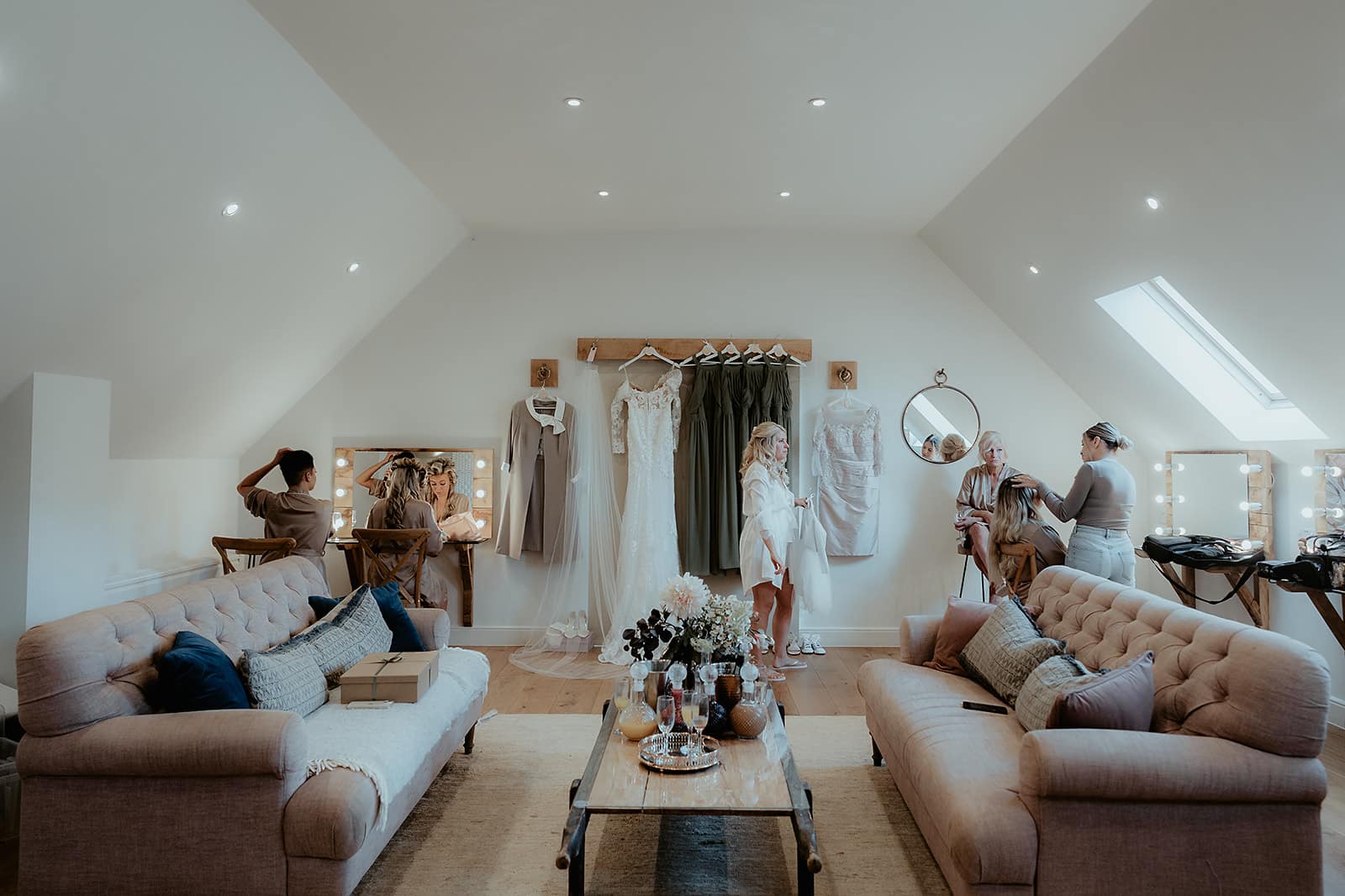 Indeed, we have two ideal spaces you can use to prepare for your ceremony. The Loft is situated on the first floor of Hyde Barn and can be accessed from 9am on your wedding day. The Library is in the main house, a great place to relax before guests arrive. Access to The Library is from 11am on your wedding day.