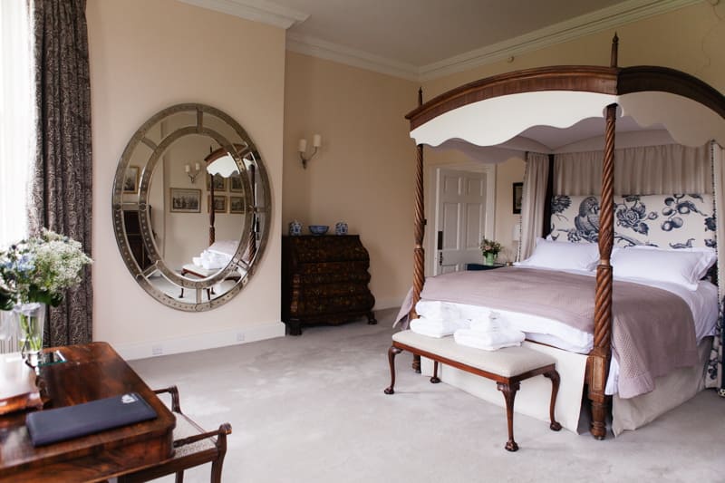Iscoyd Park has the capacity to host weddings for over 160 people and has recently been restored and redesigned to award-winning acclaim while still retaining the character, history, and warmth of a family home. This warmth contributes to a magical atmosphere that puts everyone at ease, blending traditional, classical, and historical elements with contemporary and innovative touches. At Iscoyd, every event is entirely bespoke, tailored to the couple’s unique preferences. The Bridal Suite offers a romantic setting with large windows overlooking parkland, sumptuous fabrics, and a stunning four-poster bed.