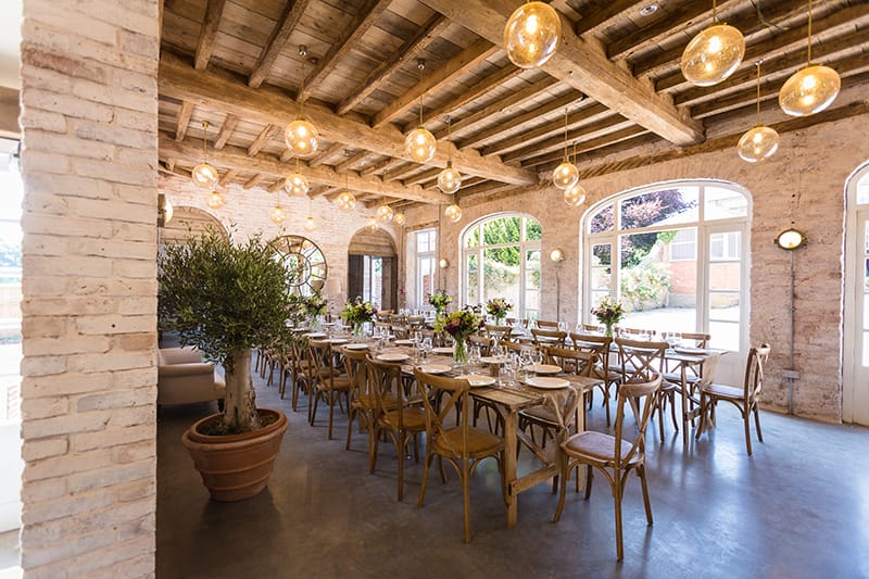 The Coach House, with its exposed beams and whitewashed brick, creates a relaxed setting for ceremonies of up to 150 and wedding breakfasts of up to 60.