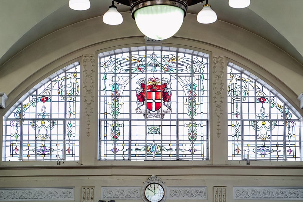 At the top of the Town Hall’s impressive marble staircase is the largest room available for ceremonies-the Council Chamber. This room features a vaulted ceiling and beautiful stained-glass windows, and despite its size and capacity, the seating layout retains intimacy. The horseshoe seating means none of your guests will be more than five rows from the happy couple. Thus, even much smaller parties do not feel overwhelmed during a ceremony.