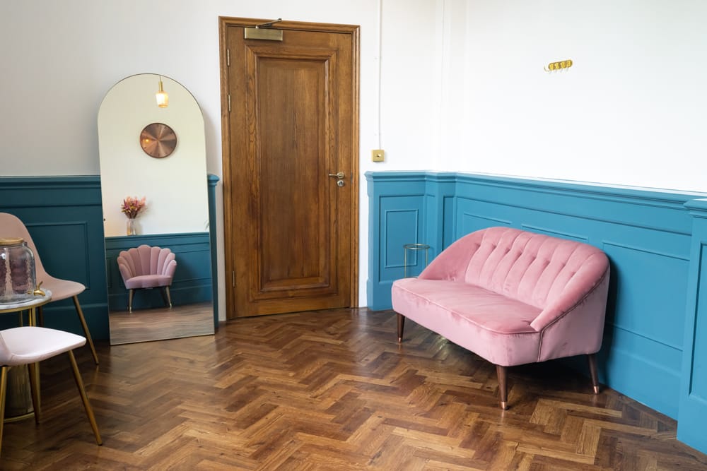 The newest ceremony rooms at Islington Town Hall provide an intimate, bijou setting for ‘cere-minis’. Choose the room you prefer for a perfect space for a city elopement, a relaxed affair before a larger celebration, or celebrating in elegant style with your very nearest and dearest. The rooms have been designed to reflect the heritage of the Town Hall but with a romantic modern twist. They feature wood-panelled walls, beautiful windows, velvet furniture, and curated décor in gold, teal, and powder pink.