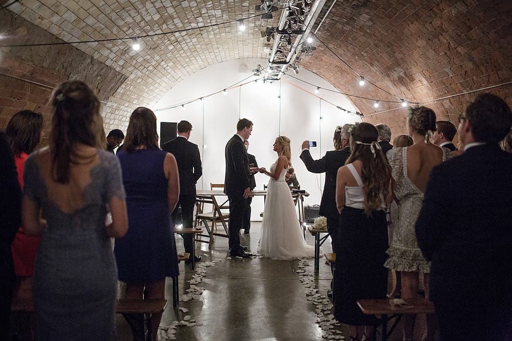 We wanted to find a venue that suited us both, where we could hold both the ceremony and reception. A fairytale wedding filled us both with dread. What we wanted was a blank canvas to make our own and found this in Kachette, an incredible studio space in Shoreditch. The venue is the former ticket hall of Shoreditch Underground Station. An industrial, gallery-like space, it had an incredible simplicity and modernist aesthetic that was just irresistible.
