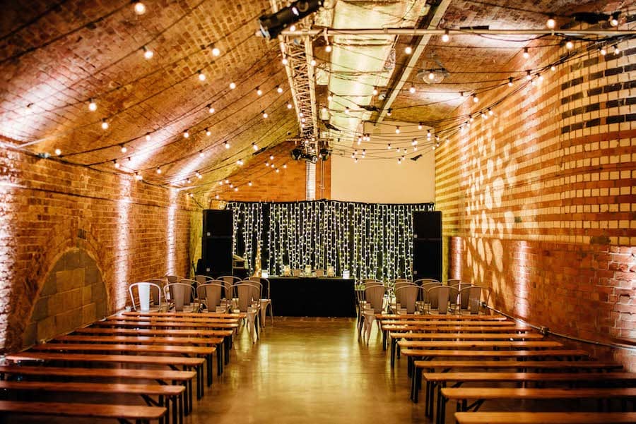 Unique venue features include exposed Victorian-era brickwork, industrial lighting truss, a stunning black gated entrance and the trademark train station clock inside the venue foyer.