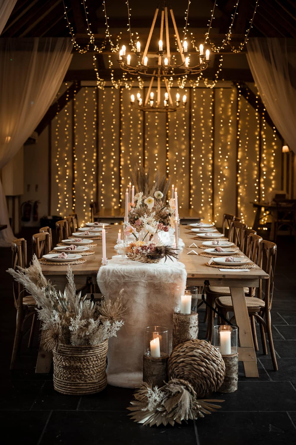 The barn measures 21m in length x 7m in width. If you are looking to hang fairy lights or bunting, this must be completed by a professional due to safety regulations.
