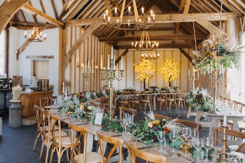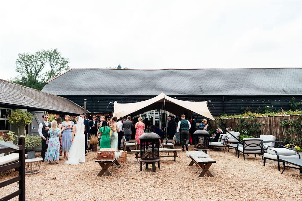 On the day of our wedding Kimbridge Barn looked beautiful, and we were very grateful for the team’s assistance in setting up the ceremony decorations, ensuring everything was just as we had envisioned. It is also worth mentioning that the layout of Kimbridge Barn is ideal for the unpredictable English weather. In addition to the barn, you also have access to the Boot Room as well as the lovely courtyard which is partially covered and comes with the option of lighting their fire pits. This meant our guests could still enjoy the outside area even when it rained and the temperature dropped.