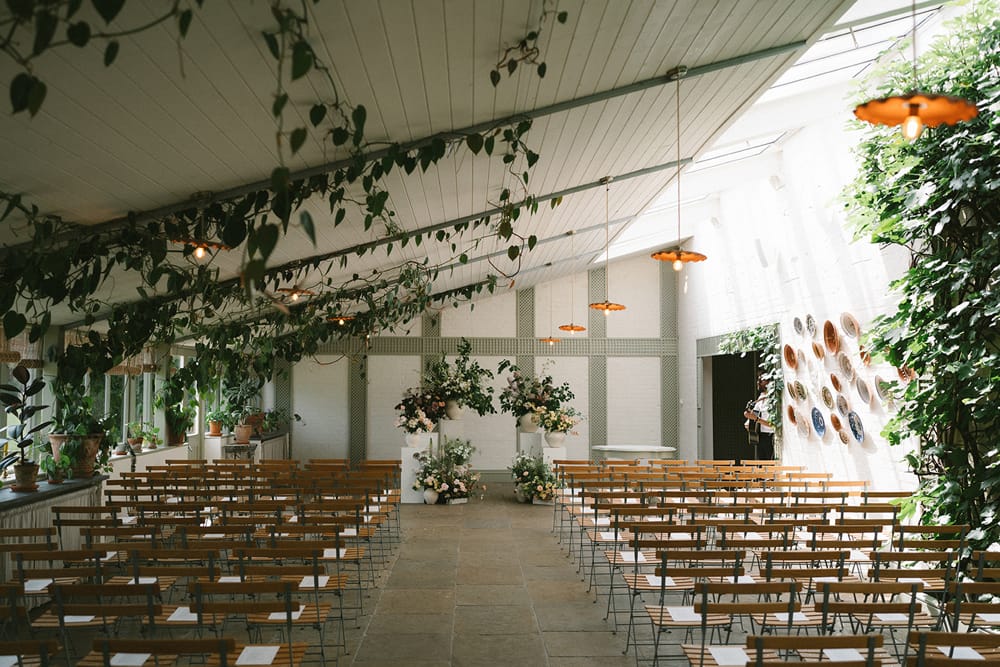 Kin House is incredible. We had our ceremony in the garden house, and so many people have told us this was the most beautiful place they’ve ever been to for a ceremony (it was!). It was light, colourful, intimate, with great acoustics for a small band. We were fortunate with the weather, so we had the reception mostly outdoors before dinner and dancing in the Kilvert Hall and bar area. The best dinner and party space, perfect for a wedding.