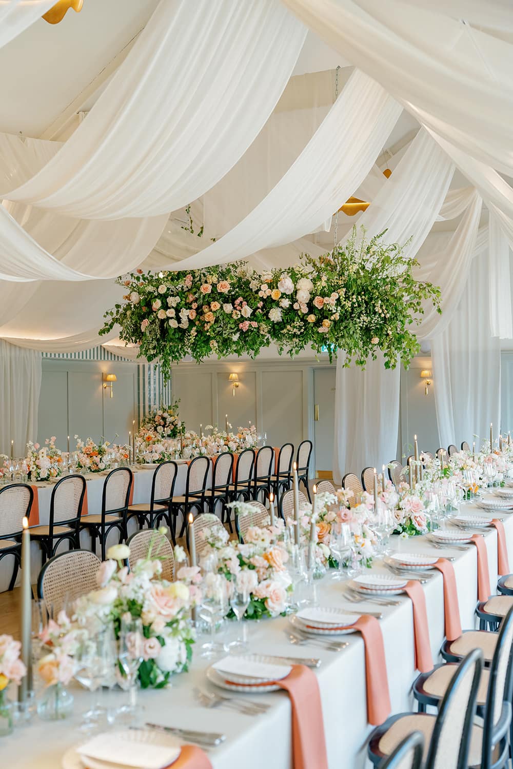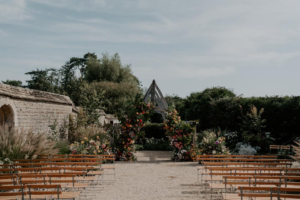 Civil ceremonies at Kin House are effortlessly elegant and versatile, offering settings for both small and large gatherings. Couples can choose the Hearth Room, accommodating up to 80 guests, for a cosy and refined atmosphere. For a grander setting, the light-filled Garden House, with room for up to 200 guests, provides a pretty indoor option. For those drawn to the outdoors, the Arbour near the Walled Gardens is ideal, with space for up to 170 guests.