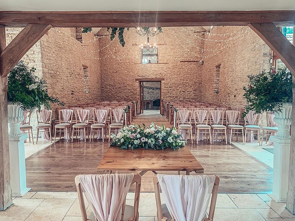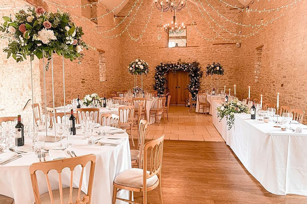 Kingscote Barn is licensed for civil ceremonies and partnerships and offers ample space for up to 150 seated guests. The barn’s neutral décor acts as a perfect blank canvas, allowing each couple to personalise the space with their preferred theme, colour, and style, creating a truly unique atmosphere for their special day.
