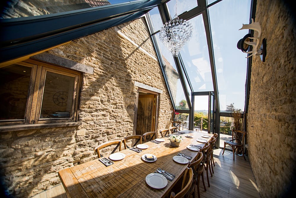 Kingscote Barn offers unique onsite accommodation for up to 50 guests, ensuring a relaxed and convenient stay. From the complimentary Treehouse honeymoon suite with stunning views to the varied selection of rooms such as cottages, pods, lodges, a retreat, and a luxury shepherd’s hut, there’s an option for every preference. Guests can enjoy the peaceful surroundings of wildflowers and bluebell woodlands, and for those staying the night, a delicious breakfast buffet is available in The Glass Room the following morning.