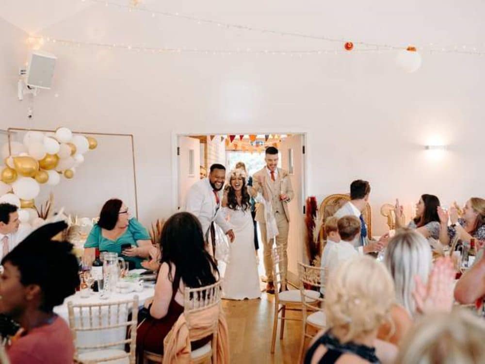 Knockerdown has various reception options, including the purpose-built Brackendale Suite, a large blank canvas that can be decorated to suit your style and personality. The suite comfortably seats up to 100 guests with a choice of formal or informal layouts to suit. The high windows on two sides allow natural light to shine through, and with a neutral-coloured interior, it lends itself to any wedding style. The Brackendale Suite also boasts a lovely outdoor terrace, perfect for an open-air drinks reception.