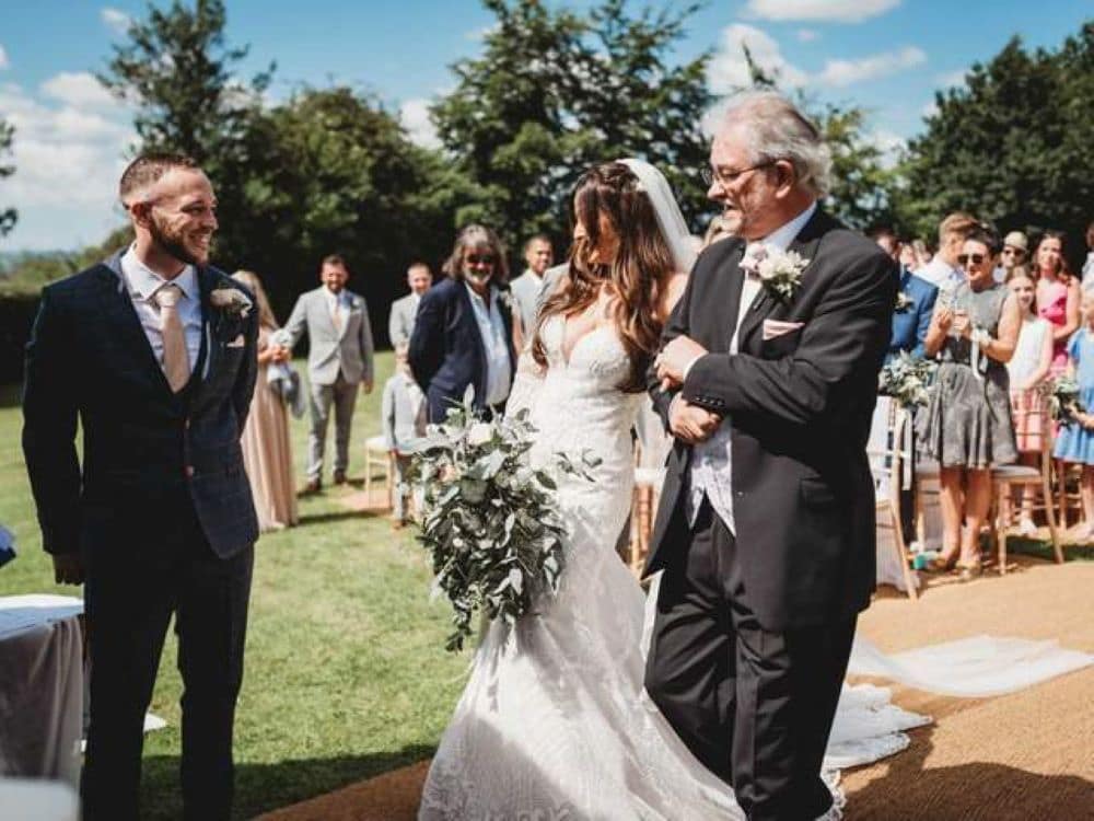 You can hold your ceremony outdoors, in the meadow surrounded by far-reaching views over rolling hills and open countryside. Knockerdown is fully licensed to host civil wedding ceremonies under the specially designed oak-framed garden gazebo. The outdoor gazebo includes a wonderful alfresco aisle, guest benches and a registrar table. You can even walk through the avenue of trees, down the meadow and to the gazebo to make for a truly stunning start to your ceremony.