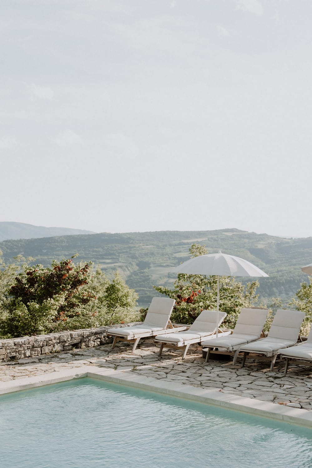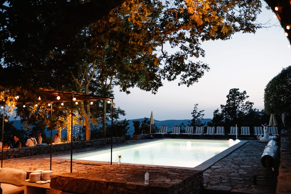 As you have the whole hamlet to use, there are several places to have your reception. Typically guests choose a roaming reception after their ceremony, starting on the lower terrace and moving through the hamlet to eventually arrive at the pool terrace with drinks, confetti and photo opportunities along the way.