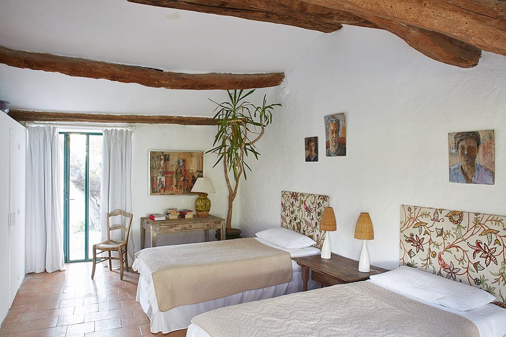 There are 15 bedrooms spread across small houses, apartments, and individual rooms, sleeping up to 32 people. Each space varies in size, layout, and interior style. The hamlet also features an art collection that has caught the attention of several style publications.