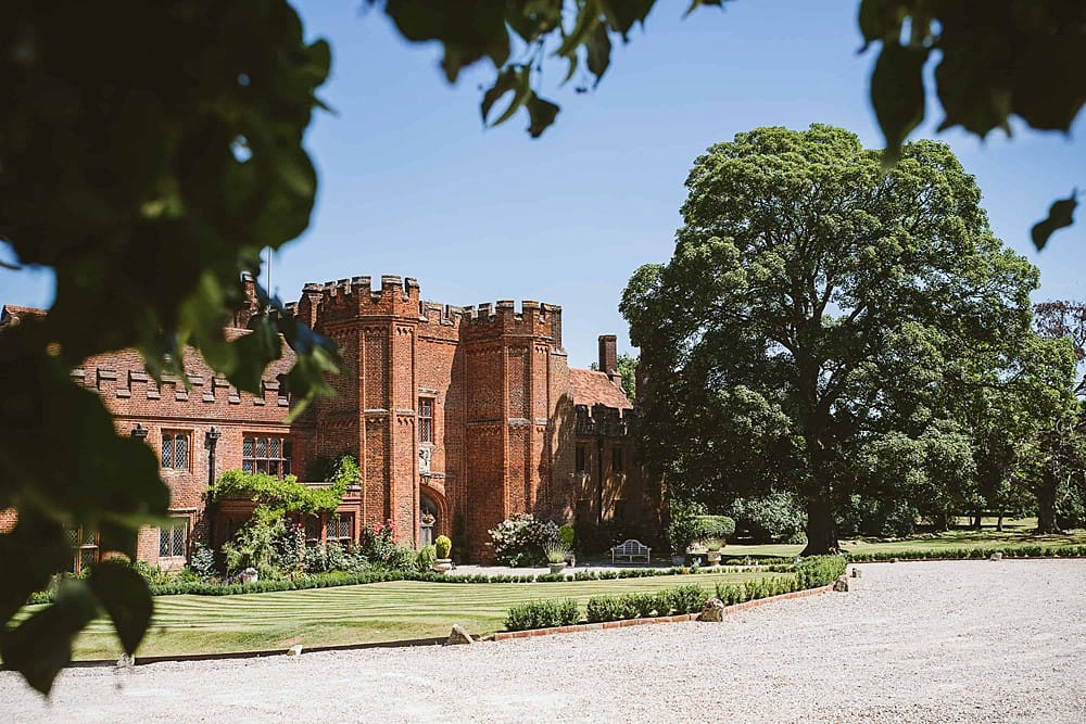 Leez Priory is a magnificent Tudor mansion nestled in the heart of the Essex countryside in 40 acres of parkland featuring lakes, lawns, and a sweeping driveway.