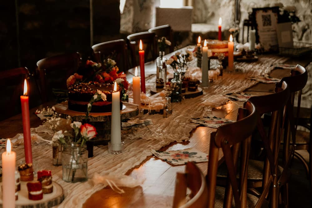 The scenery and barn were both absolutely breathtakingly stunning, and the cabins were so cosy. We had no idea what we wanted other than the stunning barn and that we wanted to get married in a month! – but Joanne was an absolute star, putting us in touch with a top-notch caterer and photographer and making sure the whole day went smoothly.