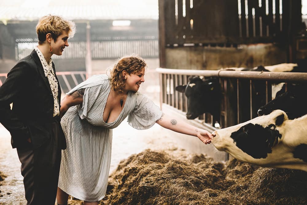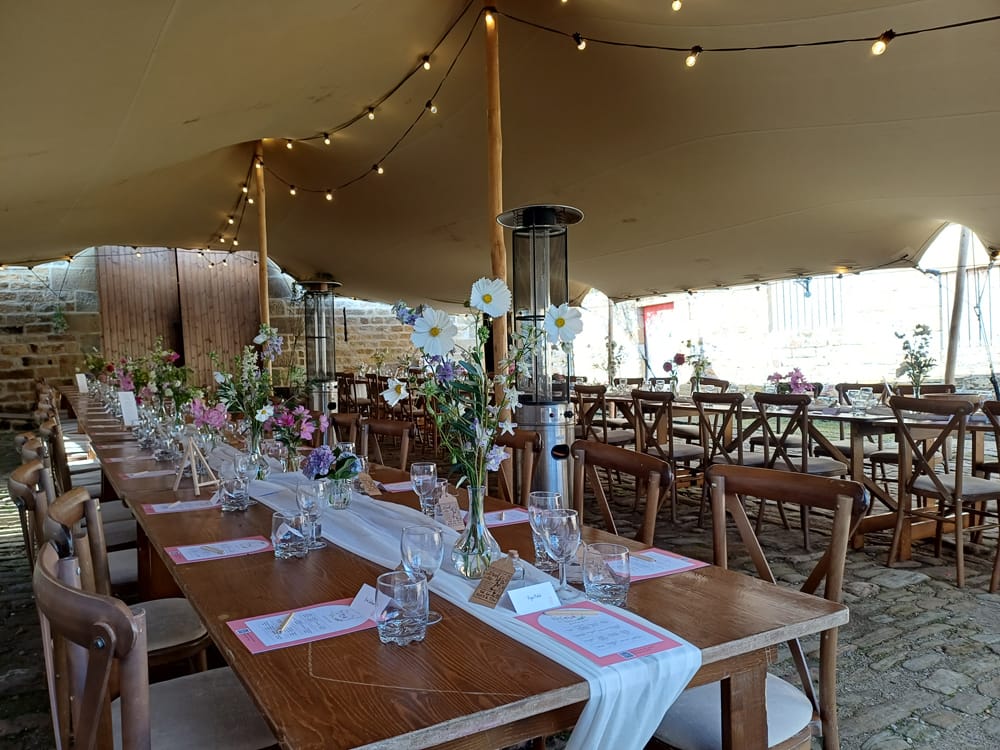 Wow, what a venue! It had absolutely everything we needed for our perfect day. An intimate ceremony in the beautiful barn with drinks in the courtyard for immediate friends and family, use of the large field at the top of the site for our large drinks reception and wedding breakfast, guest glamping in the field next to the marquee and a breakfast BBQ down by the ponds the following day. Our guests were even treated to a show of the cows on their way too and from milking.