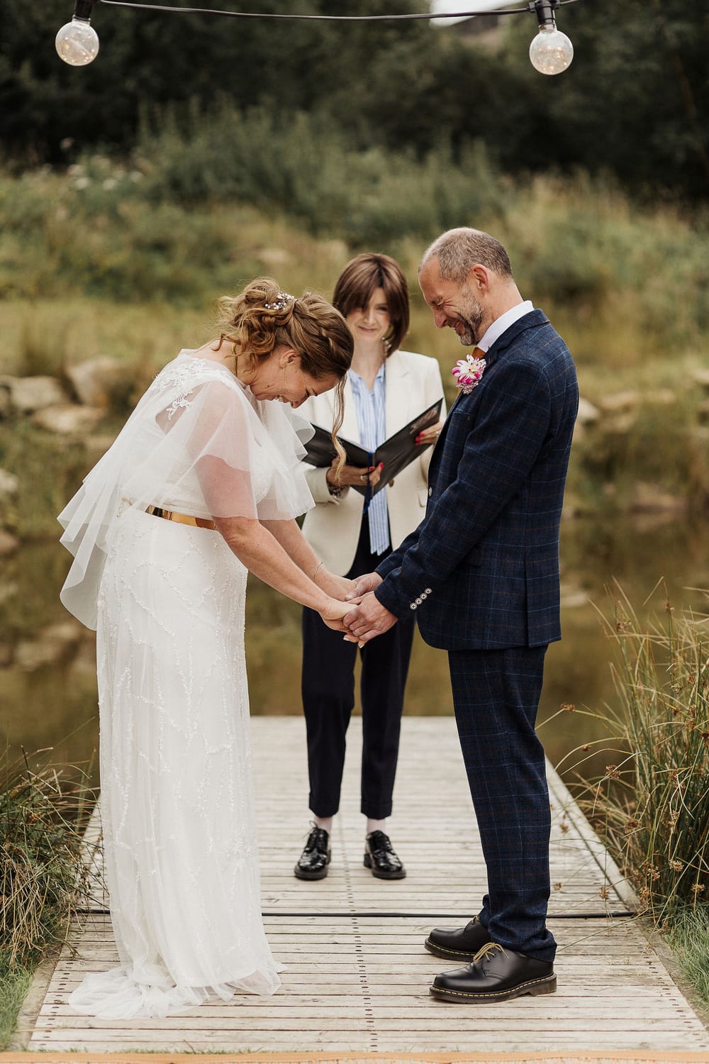 A DIY wedding can feel like a daunting task, but the natural beauty of the location was so incredible we knew that whatever we did, it would be stunning regardless. From the resident owl to the wild grasses, the pond life, to the amazing view – our 70 guests were just as blown away with how beautiful it was as we were.