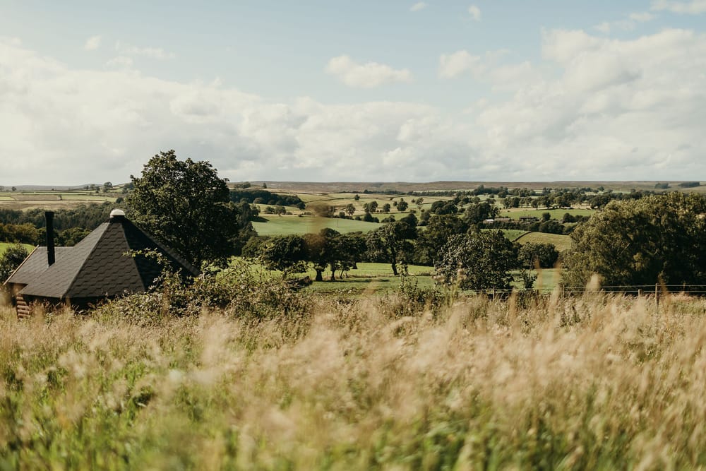 Nestled in the picturesque Yorkshire Dales, Little Seed Field offers a unique wedding experience set against a breathtaking natural backdrop. Expansive rolling hills, welcoming fire pits, panoramic sunset views, and rustic buildings dot the venue’s five-acre spread, offering couples a blend of beauty and wilderness. Seven thoughtfully designed glamping cabins are scattered throughout, integrating seamlessly with the landscape, creating a setting that feels both intimate and boundless.