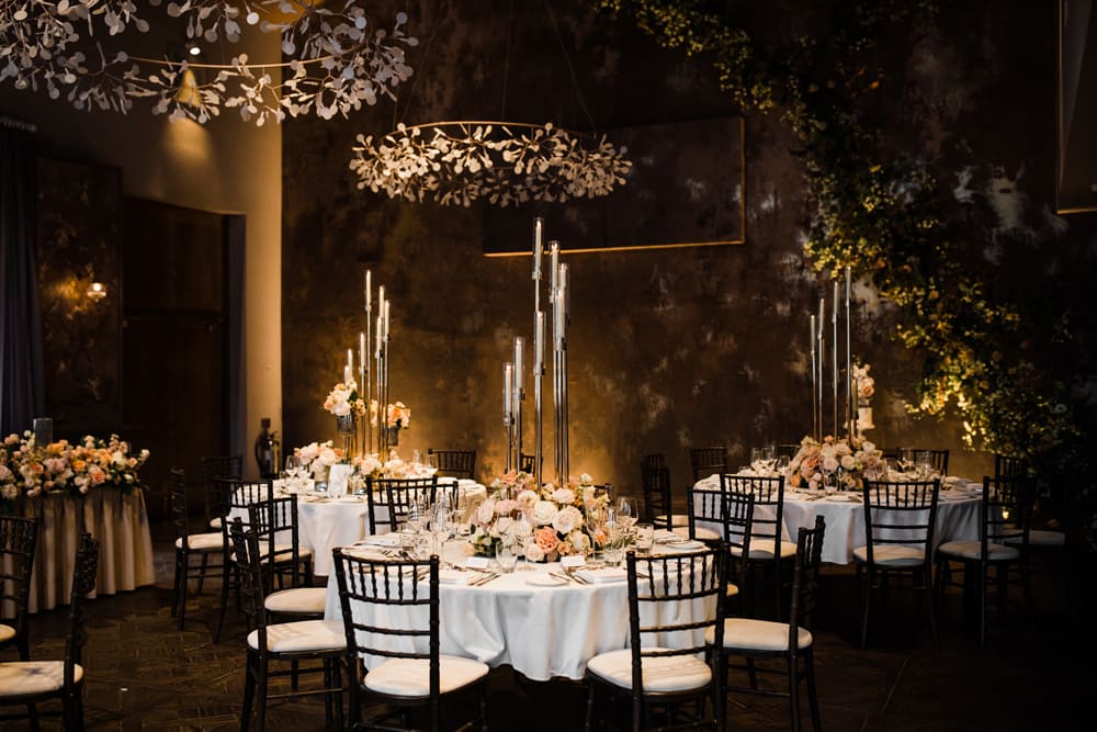 The tables are 5ft banqueting rounds that comfortably seat eight guests but can seat 10. They also have two 6ft rounds that comfortably seat ten guests but can seat 12. The team will help you every step of the way with your table plan and room layouts.