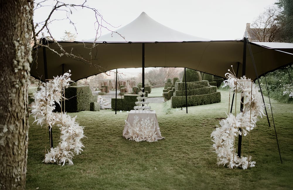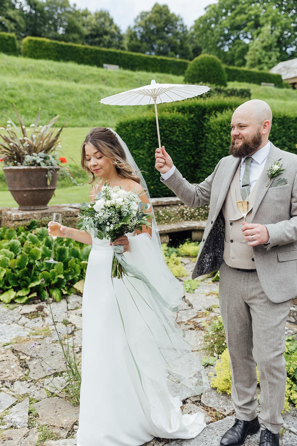 Their thorough communication, professionalism and calm manner gives you the confidence to relax and fully enjoy your day. Being adaptable and understanding throughout Covid and other situations such as the weather, created an easy lead up to the day and with experienced staff you’re able to trust them with any task! The options for where to get married is one of the best parts with so many lovely little places to choose from. The gardens themselves are so peaceful we immediately felt calm when visiting which we knew would be a lovely addition for the day. Although most of the pictures show the gardens on a sunny or dry day, it absolutely chucked it down with rain on our day but we can honestly say it didn’t matter. The ceremony was held in the coach house and the additional marquee meant we had somewhere for our guests to enjoy the reception drinks. When the rain calmed down just a tad, they were able to quickly pop out with their umbrellas to see the gardens which still looked incredible!