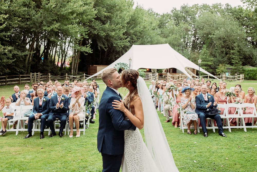 There are three ceremony areas to choose from to ensure the momentous part of your day is exactly how you want it. The romantic Walled Garden is stately in style yet intimate with lush plants, trees and climbers. The open Glade offers a wilderness feel, bordered by trees and has far-reaching views over the River Stour. The Oak Barn offers an indoor option and is rustic in style and immaculately presented with flourishes of Kentish hops and ivy.