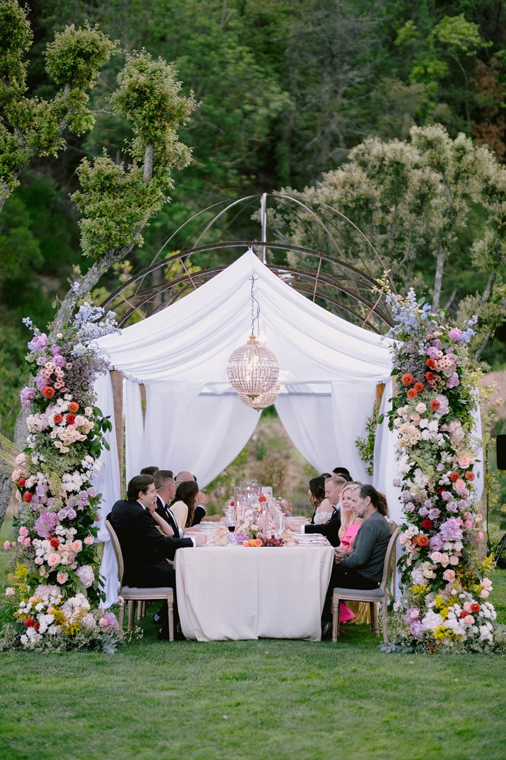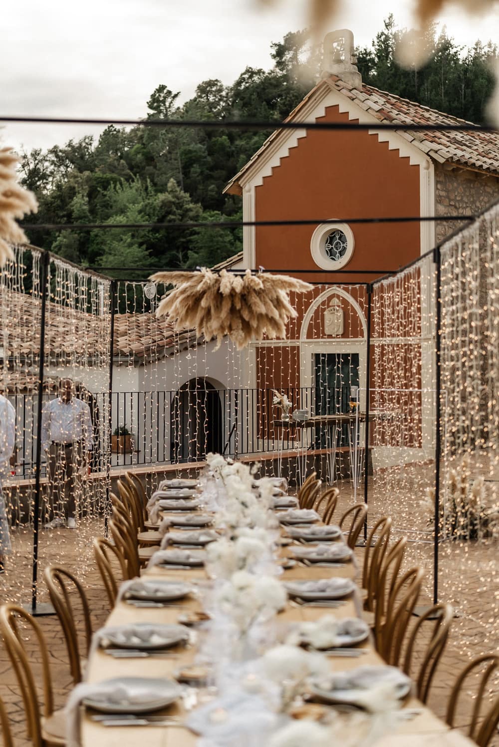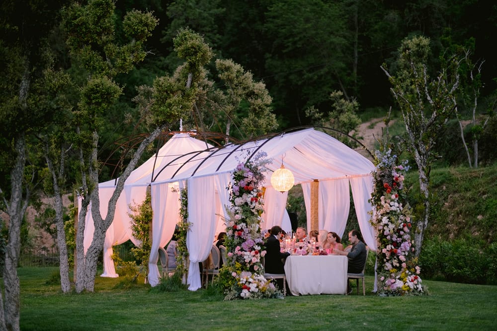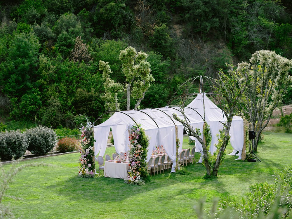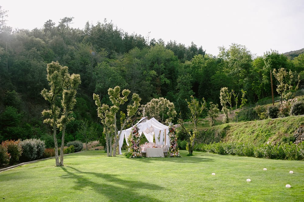 Several spaces provide a perfect setting for the ceremony. A grass field features a pergola and a stone dome, while a chapel offers a more traditional option. Whether indoors or outdoors, each space allows for a personal and meaningful exchange of vows.