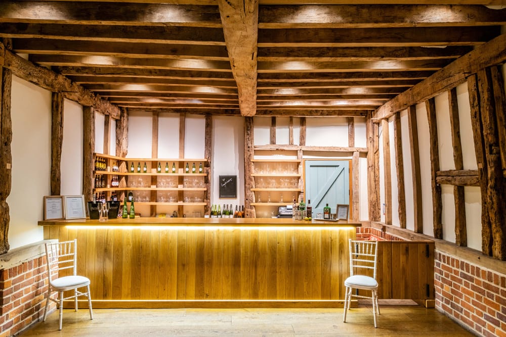 The Great Barn and surrounding gardens are available exclusively for your day. Inside, the award-winning Tithe Barn can host up to 200 guests for the wedding breakfast, followed by dancing and evening celebrations. The space includes lighting, chairs, a dance floor, a stage, a sound system, and a catering area, so everything is in place for a smooth event from start to finish.