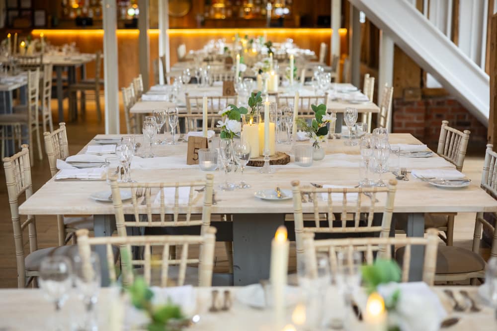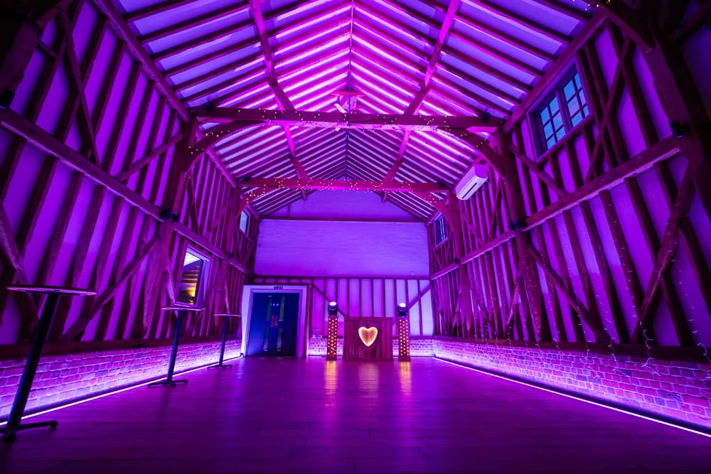 All food at Milling Barn is prepared by the in-house chef team, offering a diverse menu to suit different tastes and seasons. From relaxed dining to elegant multi-course meals, dishes are freshly prepared on-site and designed to complement a warm, celebratory atmosphere. Couples can further personalise their day by hiring items such as table décor, indoor and outdoor props, neon signs, LED lighting, garden games, and the Selfie Photo Station. In-house DJ and lighting packages are also available to transform the evening celebrations.
