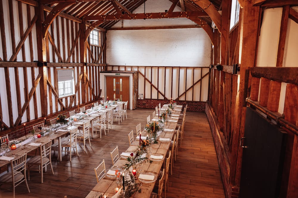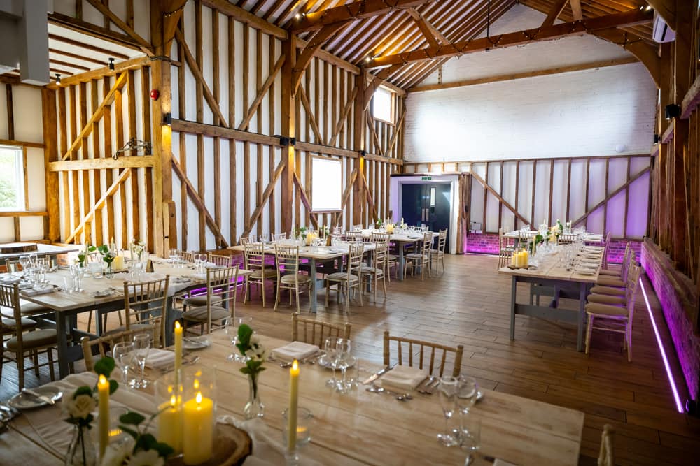 Milling Barn is a beautifully restored 17th-century oak barn set in the peaceful Hertfordshire countryside near the village of Throcking. Surrounded by rolling fields and rustic farmland, the venue combines historic charm with a relaxed, romantic atmosphere. With exposed beams, high ceilings, and soft natural light throughout the barns, it offers an effortlessly beautiful backdrop for couples looking for a countryside celebration with character and warmth.