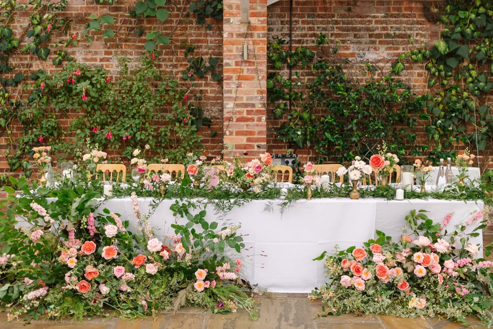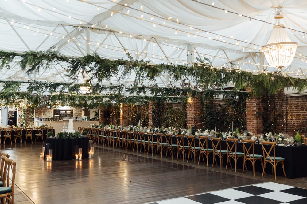 Northbrook Park offers multiple ceremony spaces to suit various tastes and wedding styles. Within the house, the Vine oom and the Orangery are both cherished options, each exuding charm and sophistication with exposed brickwork, original flagstone floors, and grand hardwood beams. Outdoors, the sunken lawn in the walled gardens provides a tranquil setting for blessings and civil ceremonies, surrounded by rosemary, lavender, and bay trees.