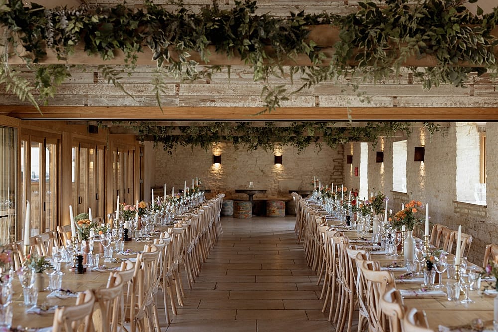 Transition your guests to the heart of the venue, their courtyard, to enjoy a relaxed drinks reception overlooking the Cotswolds valleys. Their carefully curated canapés and crisp Prosecco will be sure to get your taste buds tingling for your main meal! Hosted in the ‘long barn,’ enjoy a feast of Middle Eastern-inspired dishes, stone-baked pizzas, or their twist on tacos, all within view of their outdoor kitchen and Argentine Asado fire pit.
