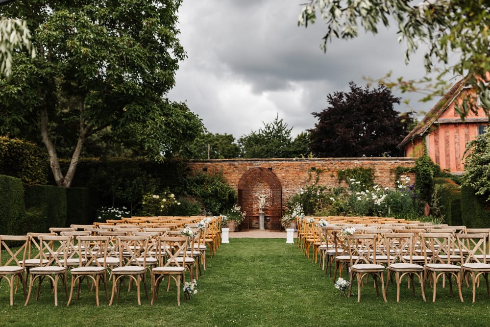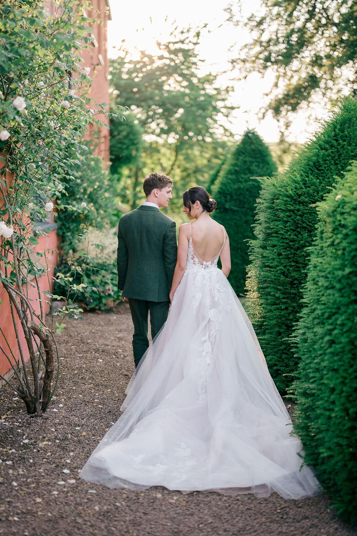 The venue itself is breathtaking, like stepping into an Italian dream right in the heart of England. The grounds are filled with beautiful flowers and unique spaces, so each part of our weekend felt like a new adventure. Whether it was the lavender courtyard, the arches for dinner or the ceremony among the quince trees, every corner was magical. The house itself is something out of a period drama, absolutely stunning.