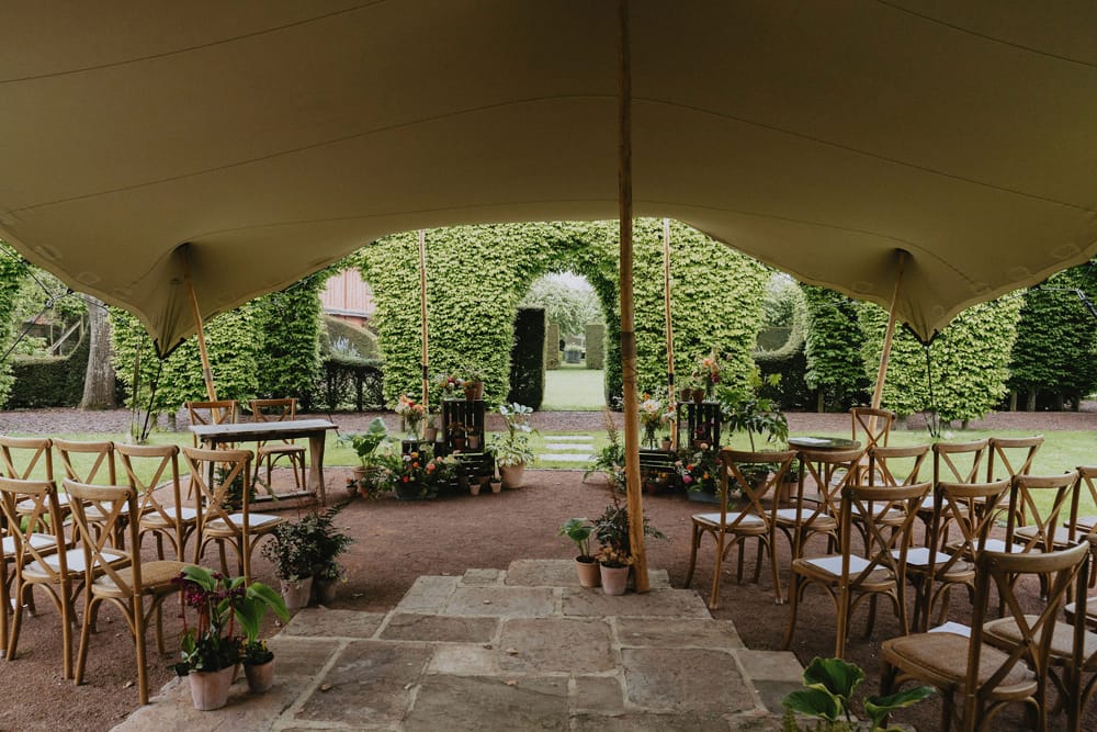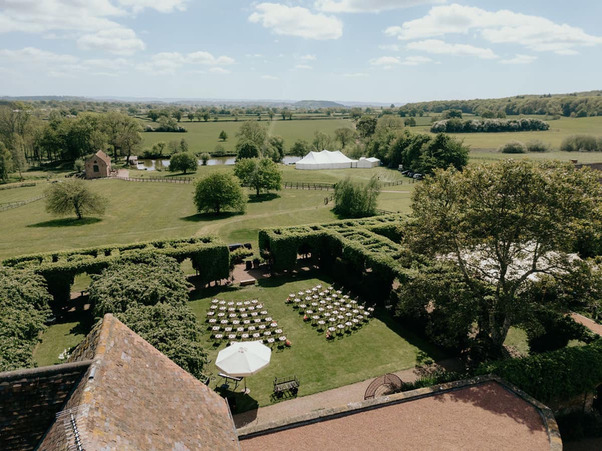 Yes, for large weddings of 40-100 guests, we have a flat terraced lawn just outside the gates to the sunken garden with amazing views across the Leadon Valley. There is another space by the lake, with views across the countryside and a fantastic view of Pauntley Court. We also provide our Tentickle Stretch Tent at no extra cost, which can be ideal if you are having a drinks reception in the gardens. We only offer a limited number of large marquee weekend weddings (40 - 100) each year.