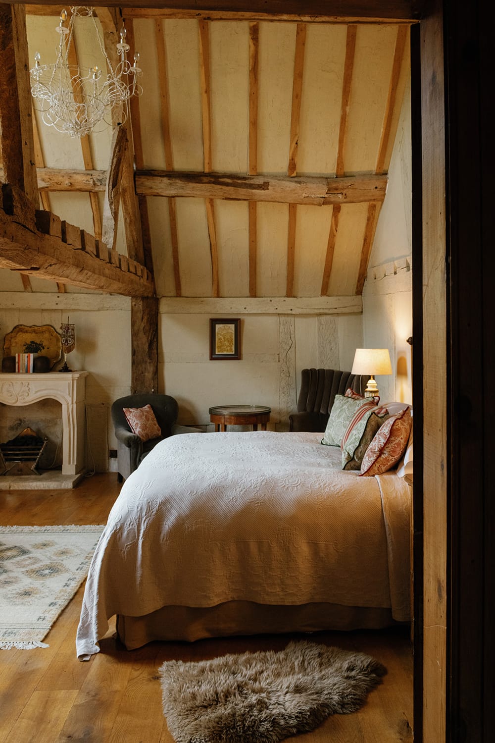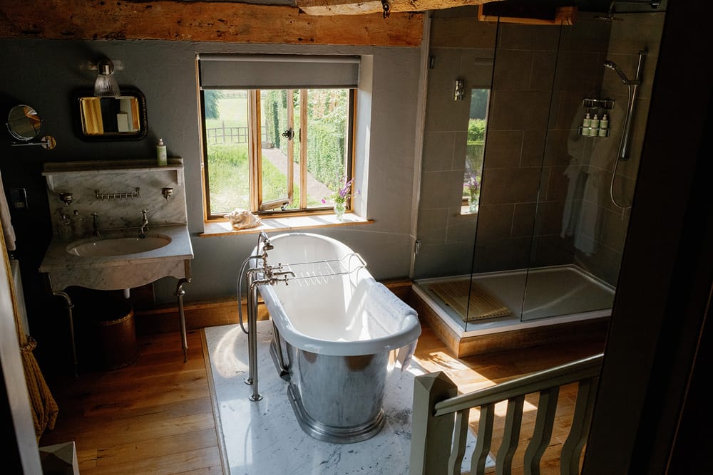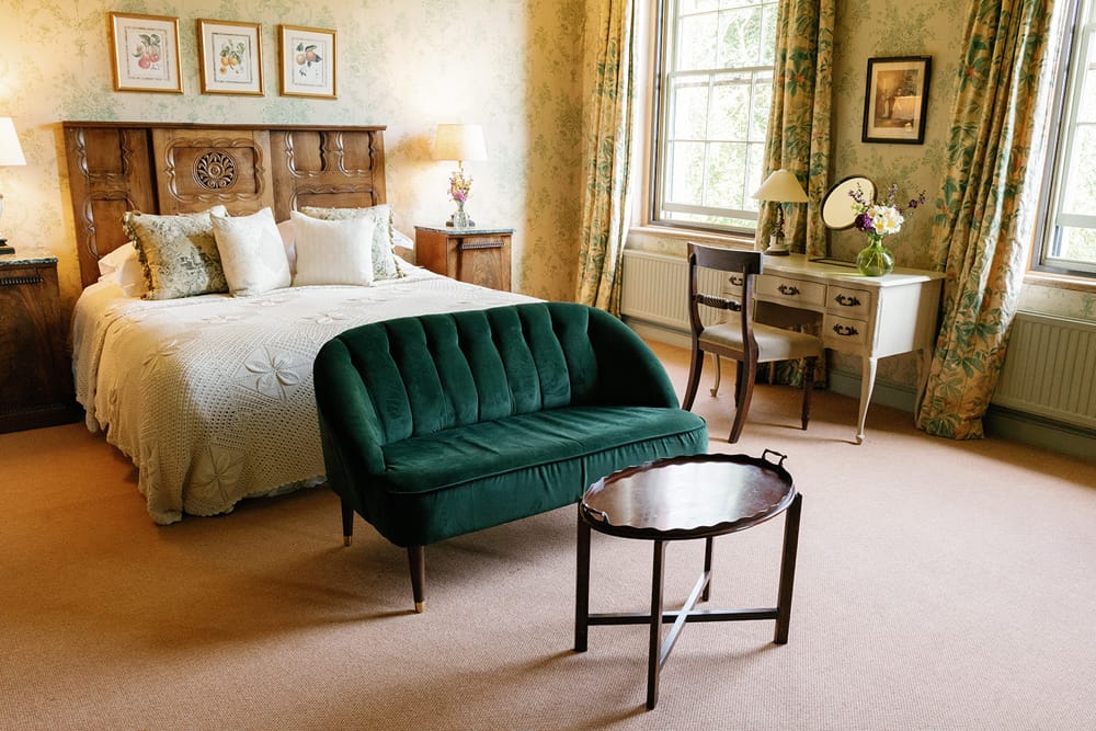 Every bedroom is thoughtfully styled with luxurious linens, soft towels, and fresh flowers from the garden. The Shepherd’s Hut, The Blissful Bower, is an ideal space for treatments or massages during the stay.