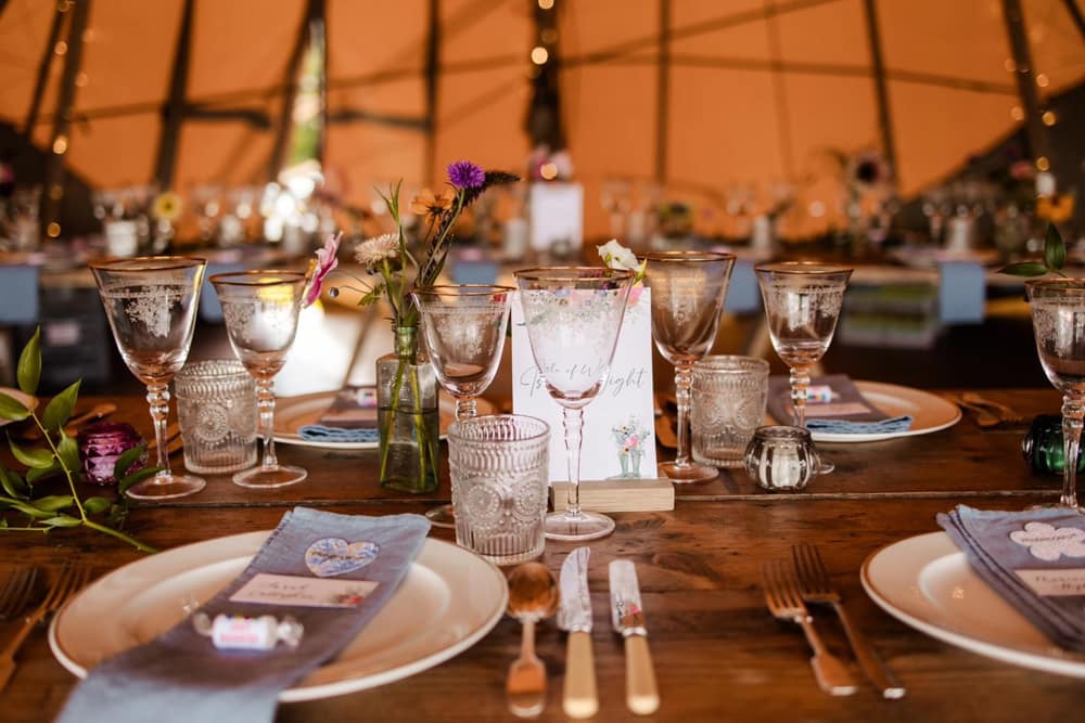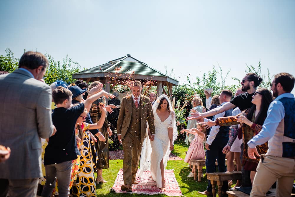 Our families stayed in the cottages, close friends were spread across yurts in an adjoining field and the safari tent, and they were all thrilled that they could make a weekend break out of our wedding in such beautiful surroundings. Logistics such as showers and toilets with external suppliers were easy to arrange as the site is ‘ready to go’ from its festival setup experience. The ceremony area was neatly tucked away by the ‘bridal cottage’ which made getting ready on the morning extra special and (genuinely!) relaxing. Again we made this our own with props and finishing touches.