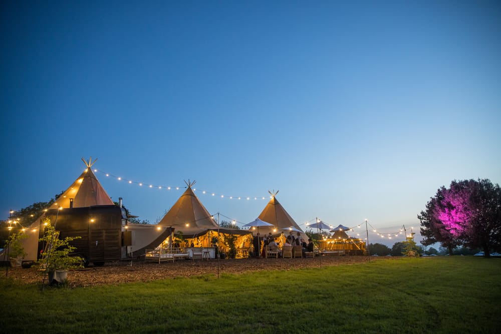 At Pennard Hill Farm, you’ll find unique features that set it apart. Imagine your intimate ceremony in a licensed, wooden pagoda in a quiet corner of the farm. Or picture your reception in a giant tipi adorned with fairy lights. With nature’s abundance and views across to the Glastonbury Tor, there’s a sense of calm and tranquillity.