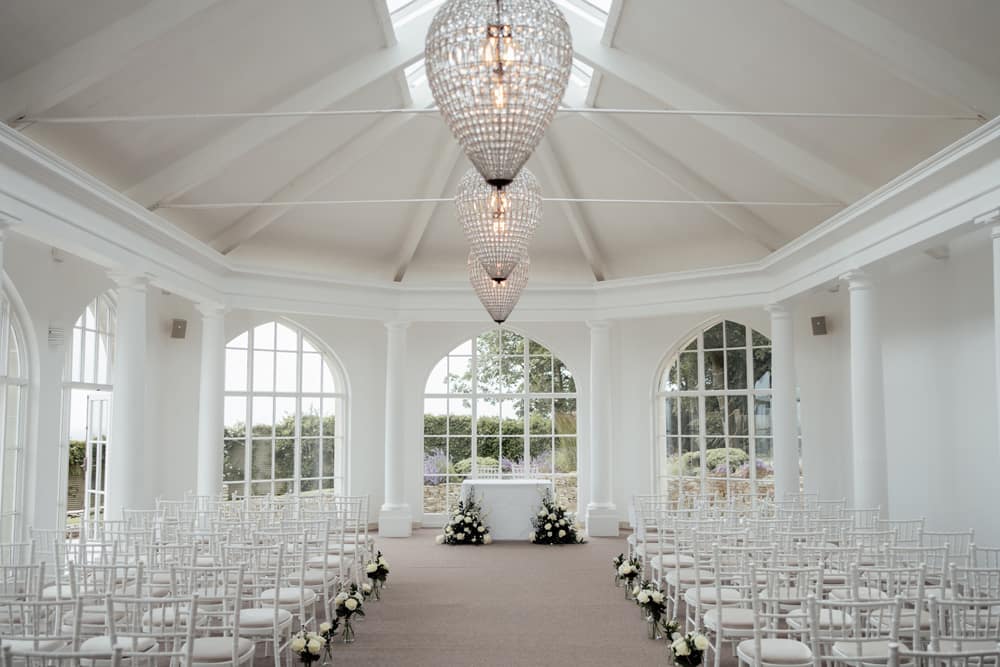 Several licensed ceremony spaces are available at The Penn Estate, offering both indoor and outdoor options with spectacular sea views.