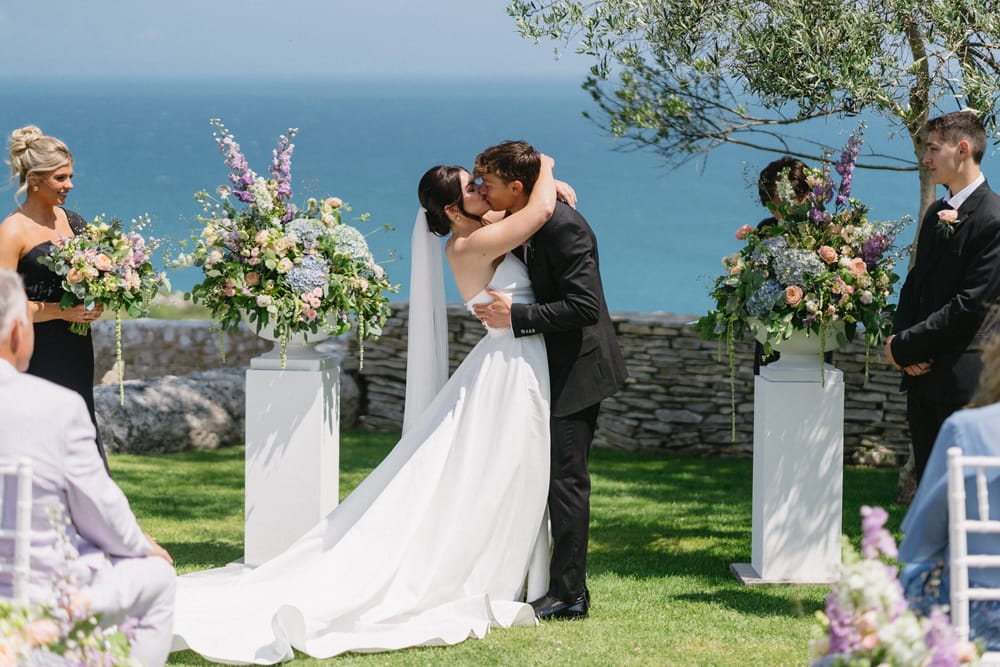 The Penn Estate’s clifftop location provides stunning views of Church Ope Cove and the UNESCO World Heritage Jurassic Coastline. The venue’s neo-gothic castle design combines intimacy, elegance, and grandeur, having been beautifully refurbished with a modern look throughout. Couples are encouraged to explore the grounds, which feature sweeping manicured lawns, a picturesque Italian Garden, and a romantic English Rose Garden-perfect settings for evening cocktails and garden games.