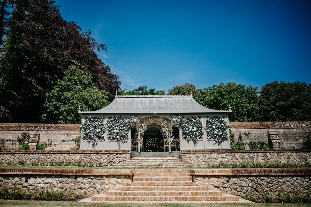 The rose-draped Pergola sits quietly within the walled garden and is licensed for civil ceremonies of up to 110.