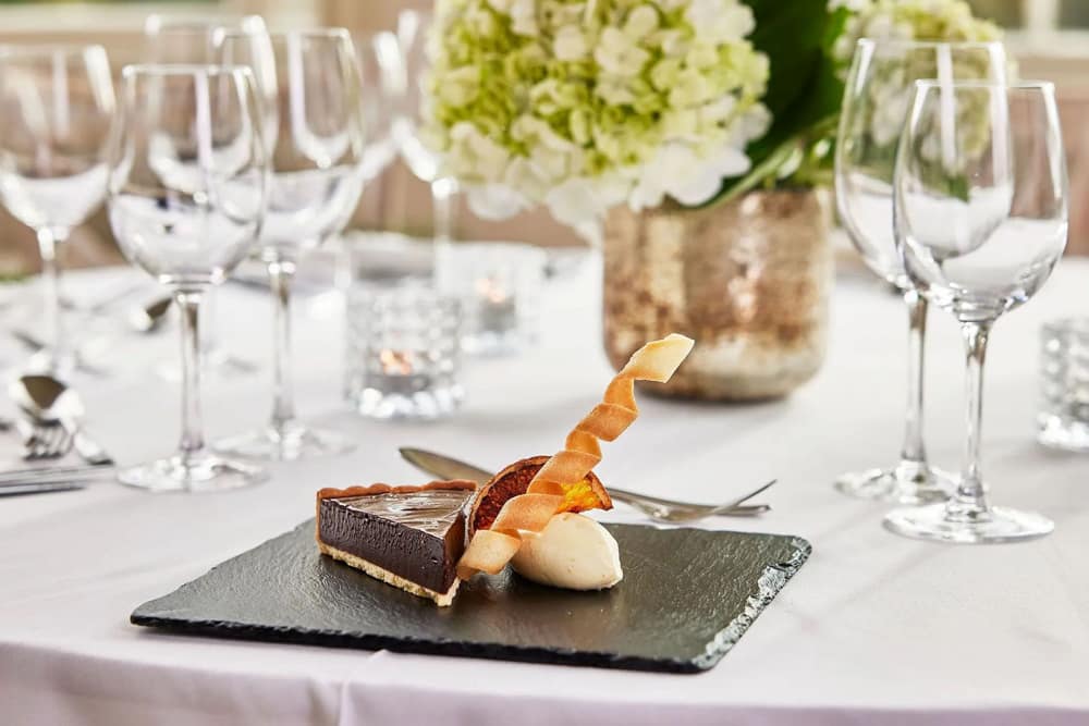Our Dining Room seats up to 100 for an indoor ceremony, or for larger weddings the Ballroom seats up to 160 for both a ceremony and wedding breakfast.