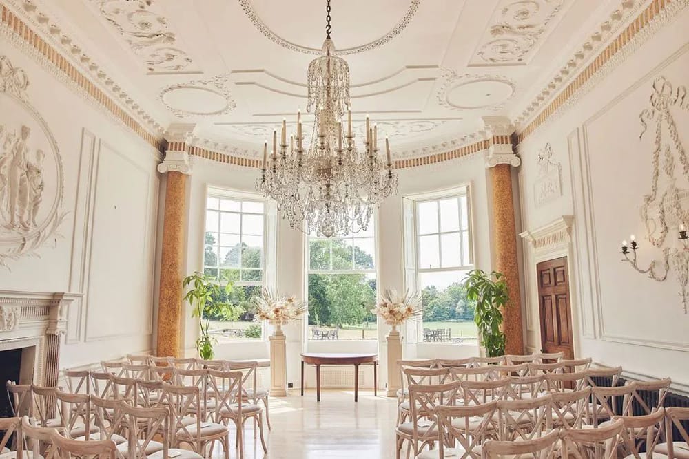 Set in over 100 acres of glorious parkland, this exquisite Grade I-listed Regency house has a timeless elegance. Outside, there are far-reaching views of Haldon Hill, Haldon Belvedere, and even Cawsand Beacon on Dartmoor, along with a picturesque lake, manicured lawns, and formal terraces. The backdrop for your wedding couldn’t be more perfect.