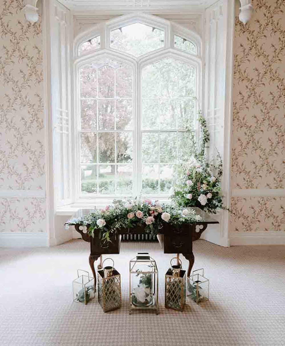 Vows may be exchanged in three romantic locations: the castle gardens, surrounded by wildflowers; the comfort of the grand Cardeston Suite; or, for those wishing for a smaller affair, the cosy Georgian Dining Room.
