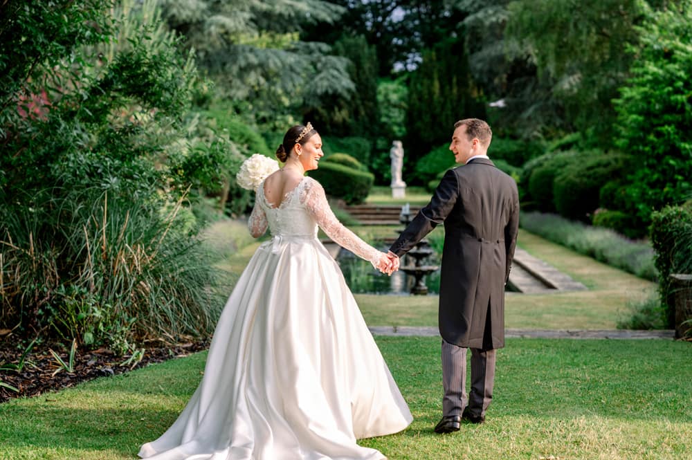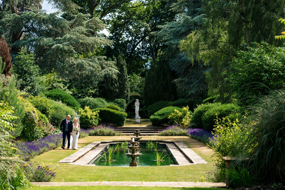 A hidden Secret Garden awaits within the grounds of Royal Berkshire, providing an idyllic setting for outdoor ceremonies. Inside the hotel, the wedding spaces are bright and airy, overlooking expansive lawns. Couples can step out to the Lilypond Terrace, capturing memorable photos against the beautiful backdrop of the main house.