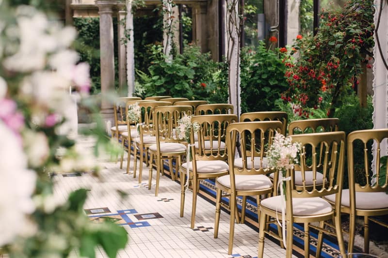 The beautiful interiors have just undergone a historic restoration. Now complete, they achieve a sophisticated fusion of light spacious elegance and grandeur, with the main saloon offering the perfect backdrop for any event. This splendid venue will transport you back in time, with the scent of roses filling the conservatory, the old library looking out onto the gardens and the drawing room with its original hand-painted Chinese wallpaper.