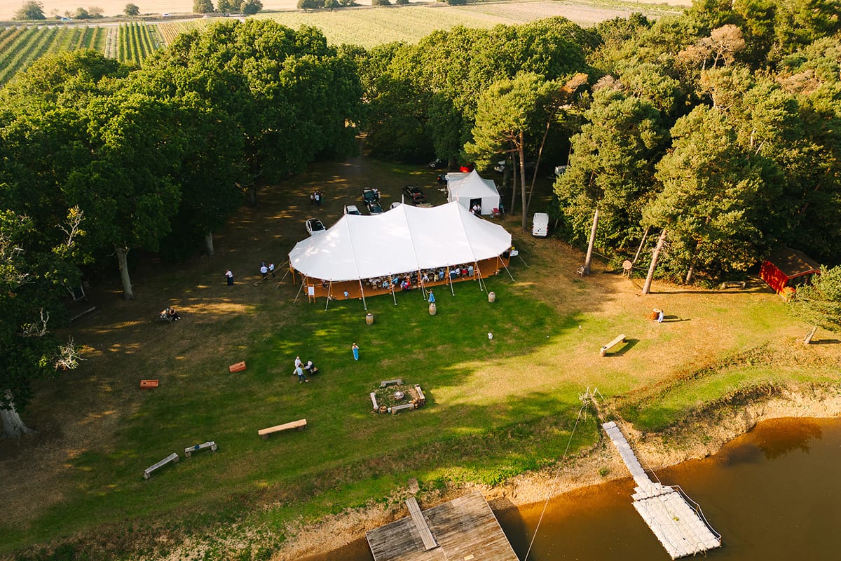 Sopley Lake spans 25 acres on the edge of the New Forest, offering an exclusive and private space for marquee wedding receptions. This Dorset venue is surrounded by tranquil waters and open fields, creating a picturesque setting for an unforgettable celebration.